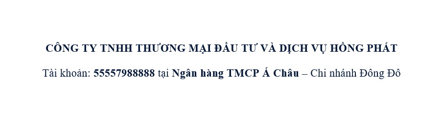 Quý khách hàng có thể thanh toán chuyển khoản vào tài khoản công ty của chúng tôi.